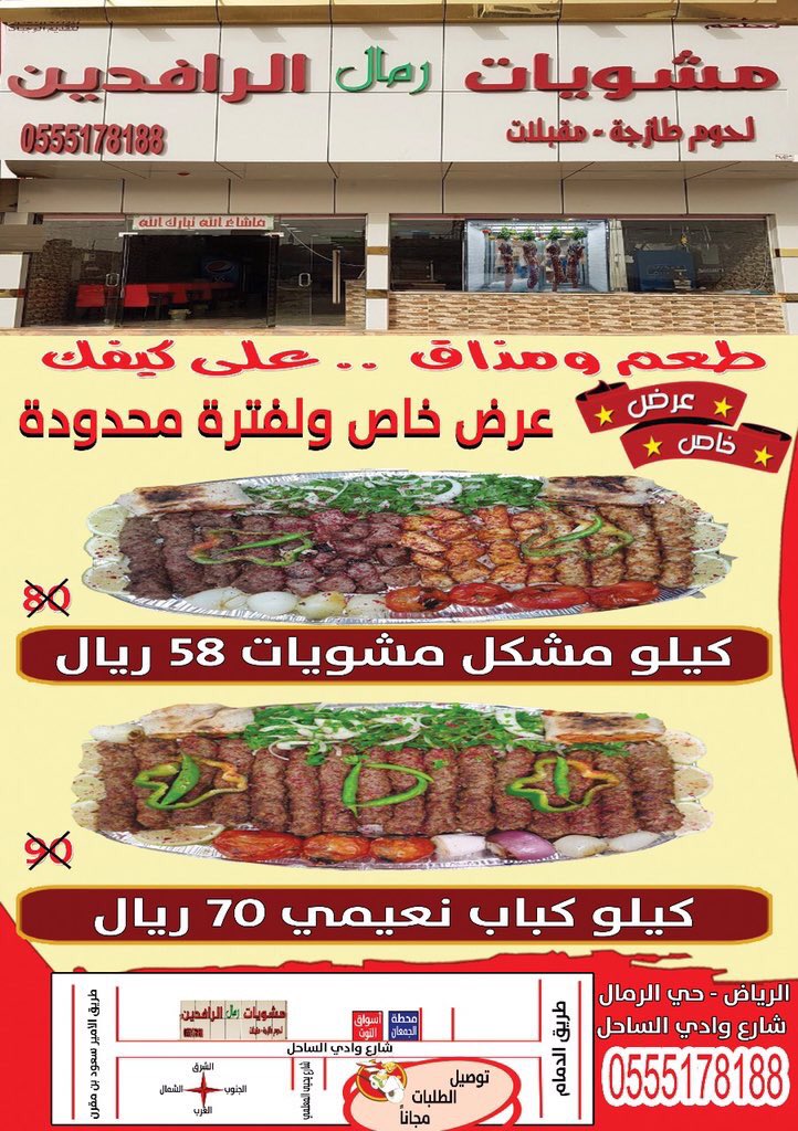O Xrhsths حي الرمال الرسمي Sto Twitter إعلان مشويات رمال الرافدين في شارع وادي الساحل بـ حي الرمال تقدم خصم مميز لحقوا عليه اليوم وبكرة كيلو مشويات ب٥٨ ريال فقط واعطونا تجاربكم