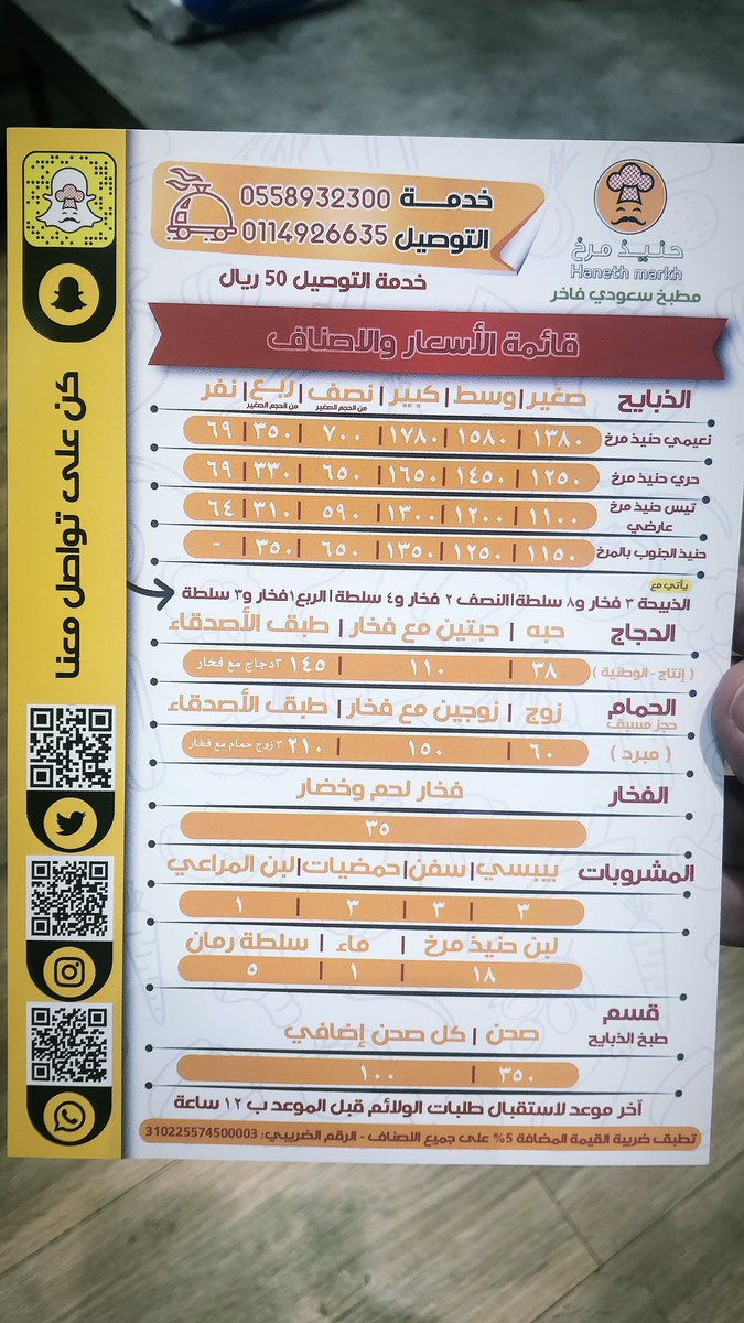 مطعم حنيذ مرخ الأسعار المنيو الموقع كافيهات و مطاعم الرياض