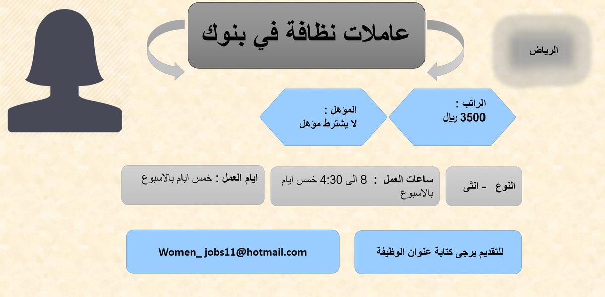 O Xrhsths وظائف Ksa Sto Twitter مطلوب عاملات نظافة في بنوك في الرياض وظائف وظائف نسائيه الرجاء كتابة مسمى الوظيفة في عنوان الإيميل