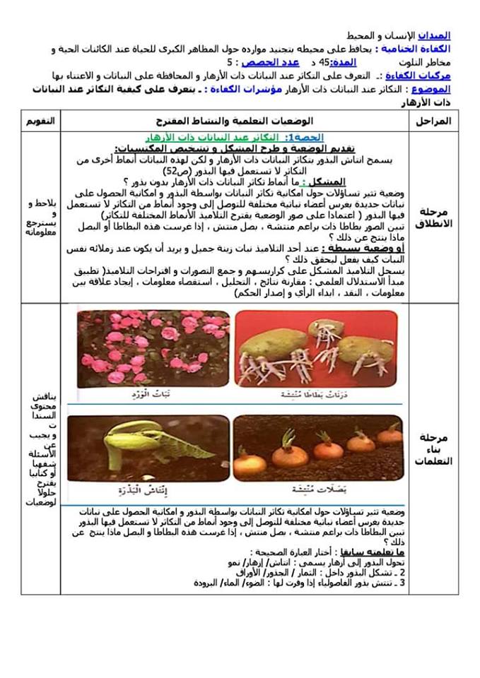 مطوية التكاثر الزهري و الوسط البيئي موارد المعلم