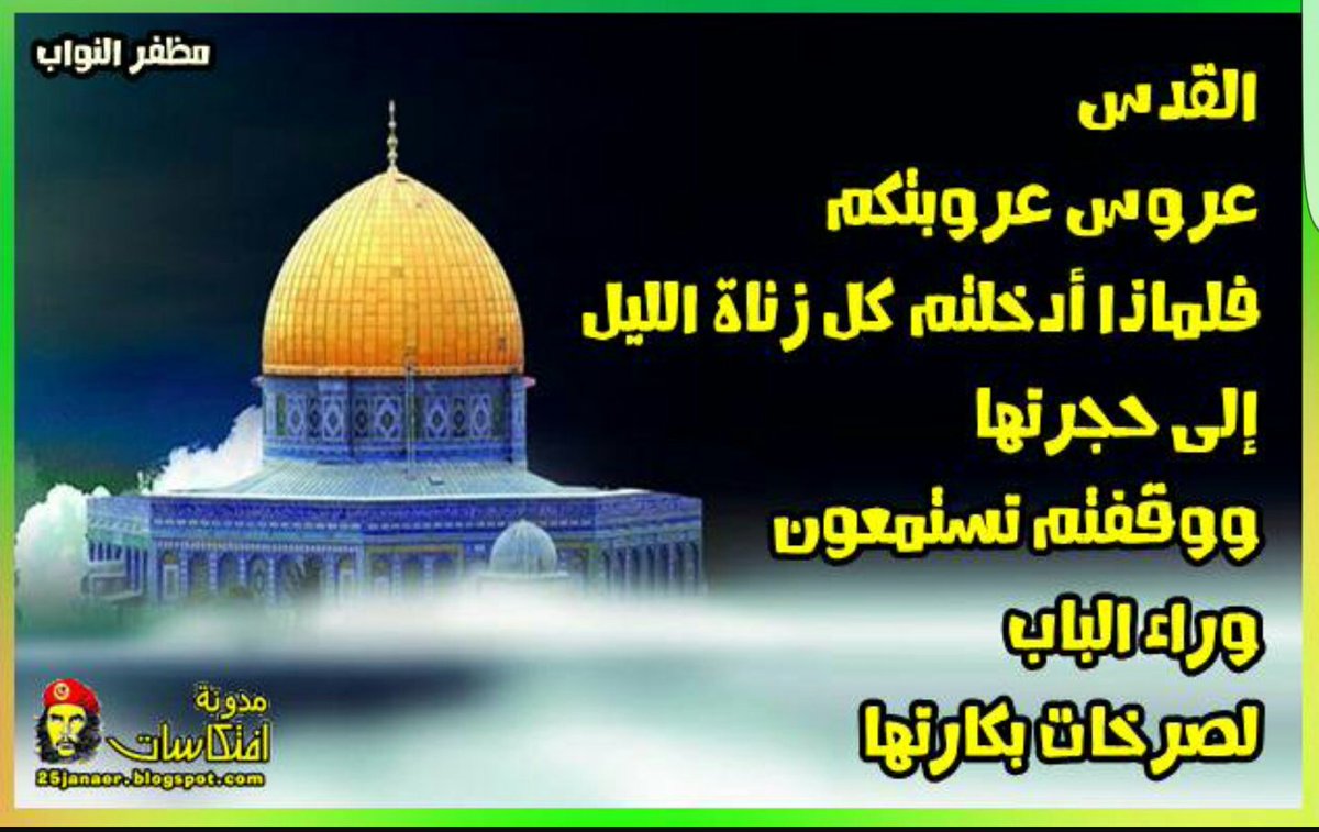 علي On Twitter القدس عاصمه فلسطين الابدي القدس عروس عروبتكم فلماذا ادخلتم كل زناة الليل الى حجرتها ووقفتم تستمعون وراء الباب لصرخات بكارتها وسحبتم خناجركم وتنافختم شرفا وصرختم فيها ان تسكت صونا للعرض