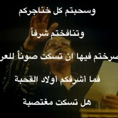 الشاعر مظفر النواب على تويتر لانخدع ثانية بالمحور أو بالحلفاء فالوطن الآن على مفترق الطرقات وأقصد كل الوطن العربي فإما وطن واحد أو وطن أشلاء بيان سياسي Malnwab Adab