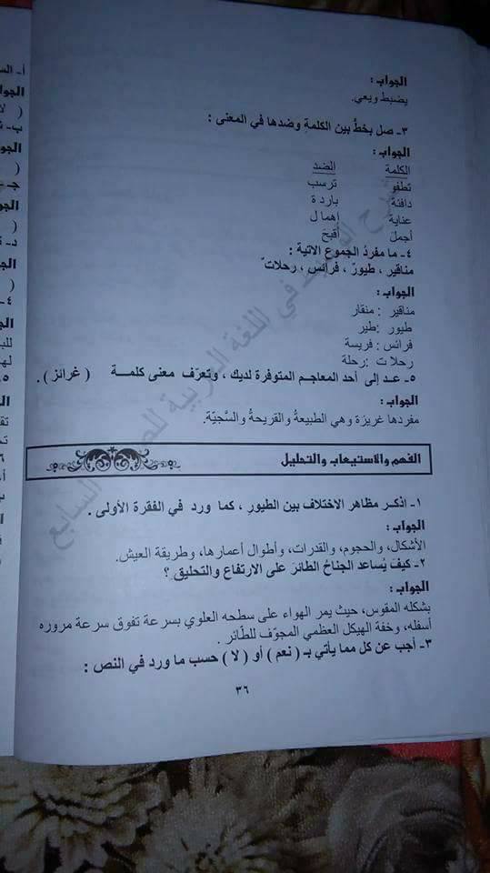 شرح ومعاني وحل أسئلة وحدة عالم الطيور لمادة اللغة العربية للصف السابع الفصل الأول منتديات صقر الجنوب