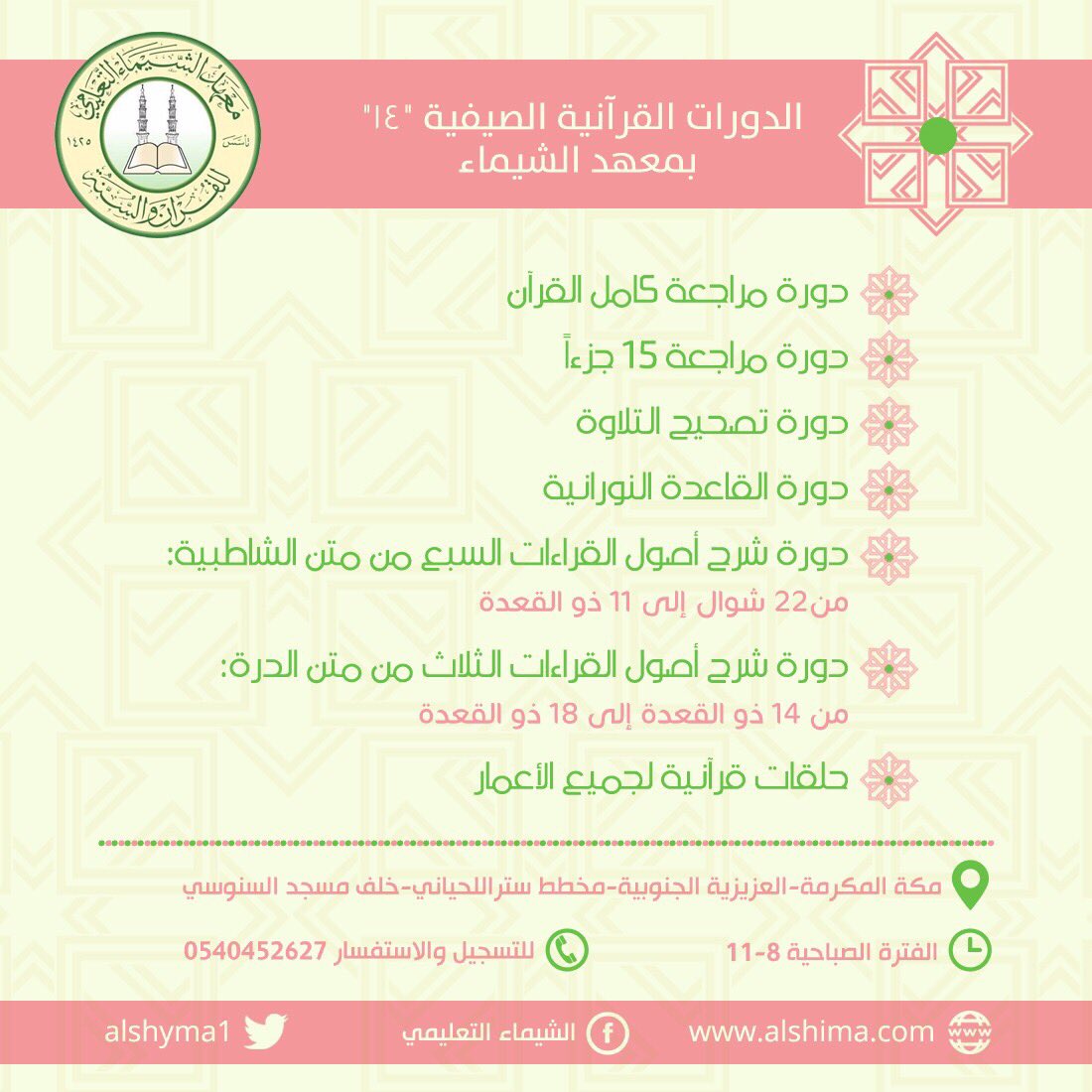 معهد الشيماءالتعليمي Pa Twitter الأحد١٥شوال بدء التسجيل للدورات الصيفية بمعهد الشيماء فحيهلا