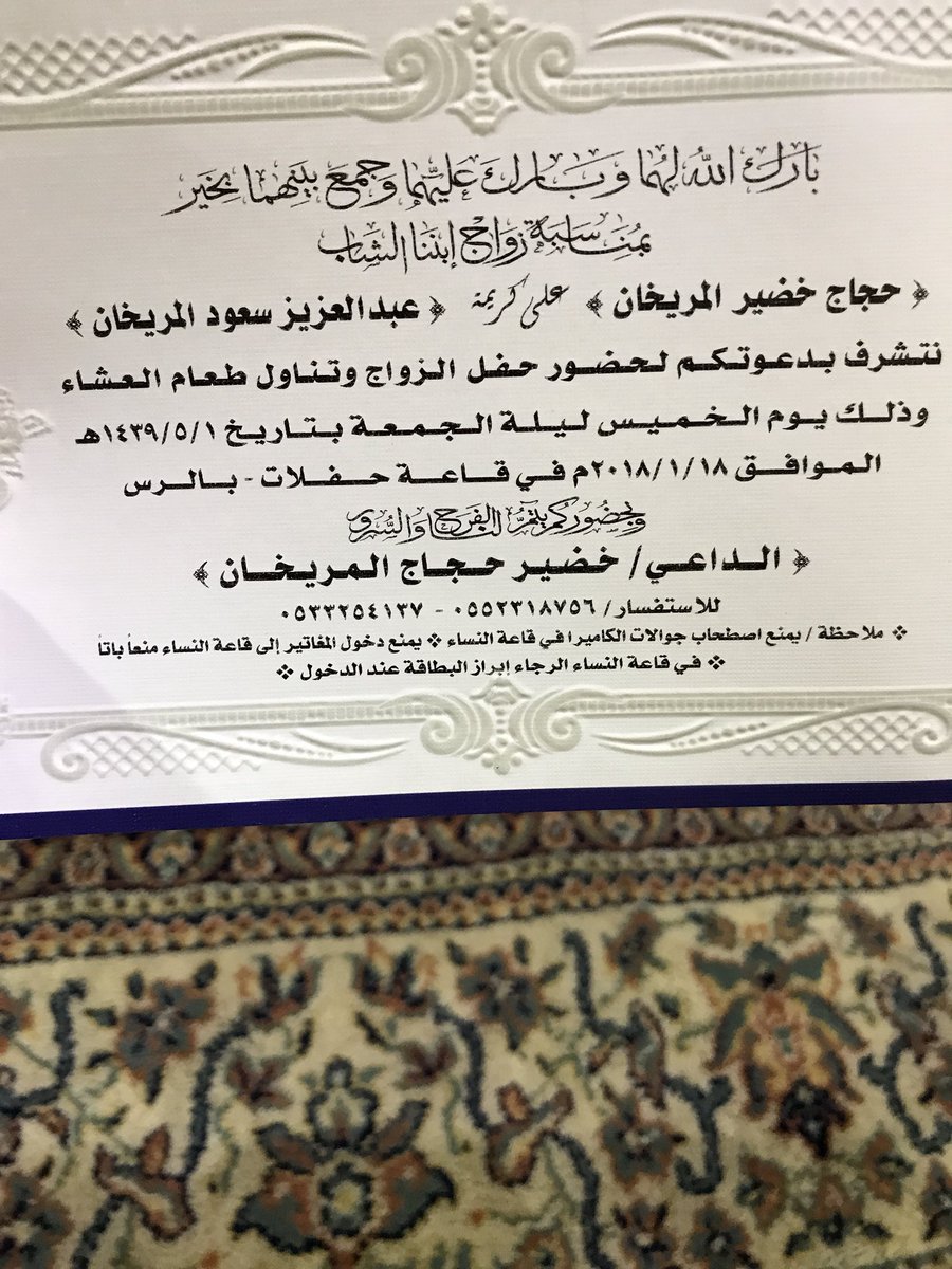 صحيفة الجملاء من حرب On Twitter يتشرف خضير بن حجاج المريخان بدعوتكم لحضور حفل زواج ابنه حجاج