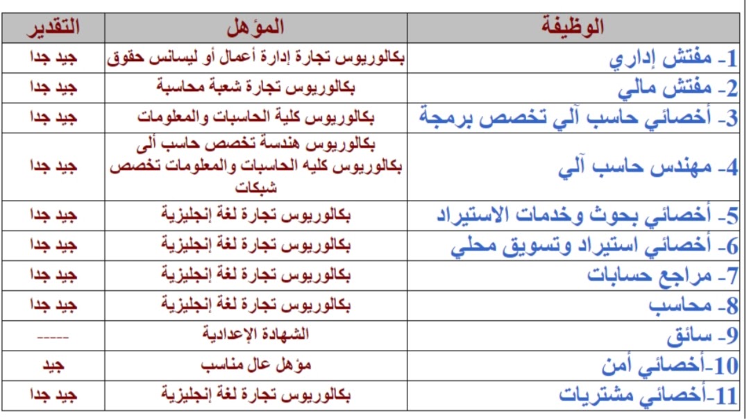 11 تخصصا مطلوبا ضمن الوظائف المتاحة بهيئة السلع التموينية اليوم السابع