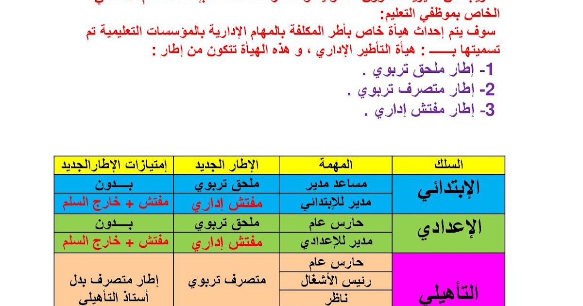 تـربـوي تـكويـنــي الاطار النظام الاساسي الجديد حول وضعية الأطر الإدارية بالابتدائي و الإعدادي و الثانوي التأهيلي