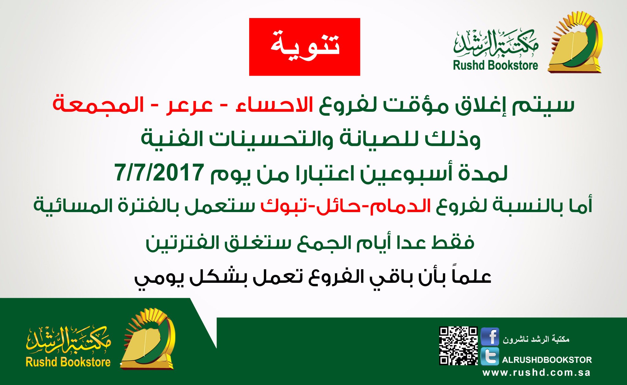 فروع مكتبة الرشد داخل المملكة وخارجها