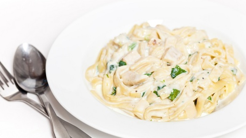 وصفة معكرونة بالصلصة البيضاء والدجاج