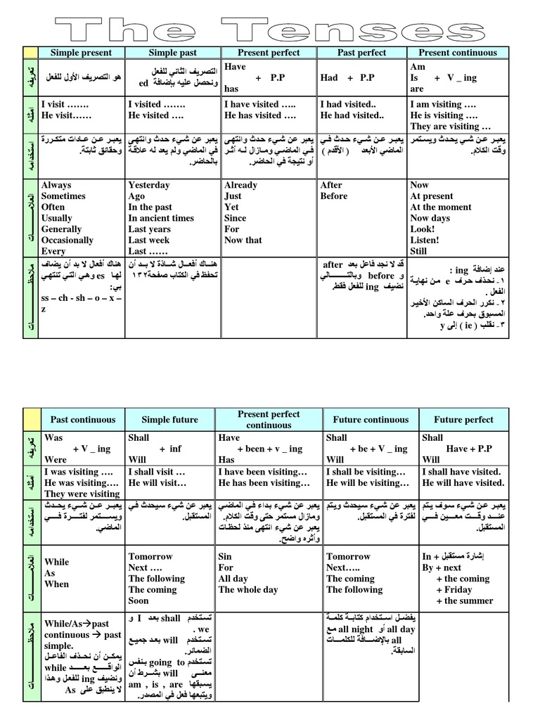 جدول ازمنة اللغة الانجليزية Pdf
