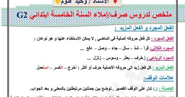 ملخص القواعد الاملائية السنة الخامسة ابتدائي الجيل الثاني Spelling Rules Education Spelling