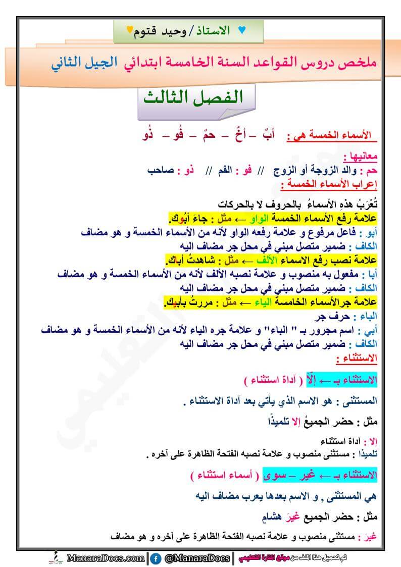 ملخص القواعد النحوية للسنة الخامسة الم عين لأساتذة السنة الخامسة Facebook