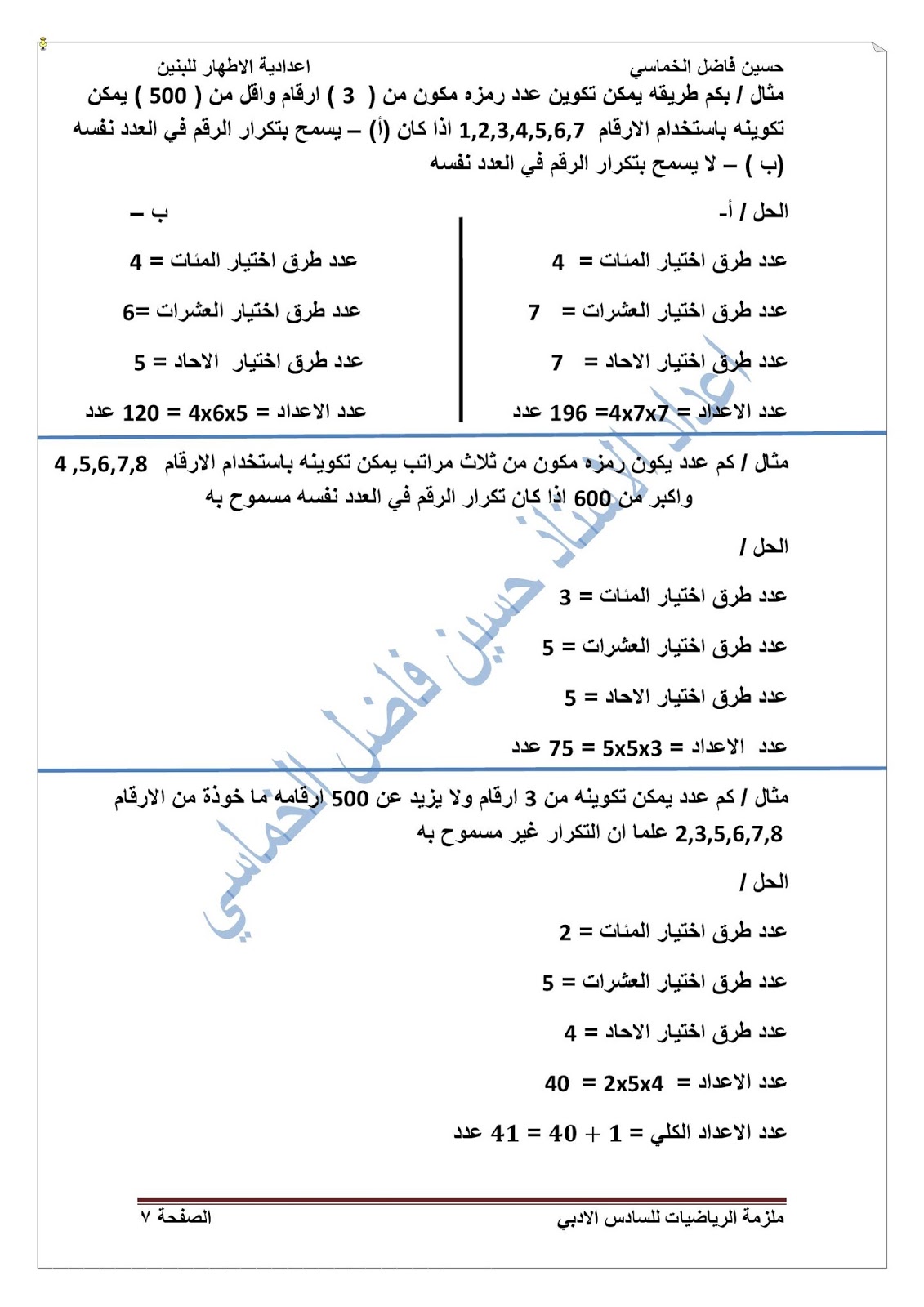 ملزمة الرياضيات للصف السادس الادبي من اعداد الاستاذ المبدع حسين فاضل الخماسي مدونة ملازمنا