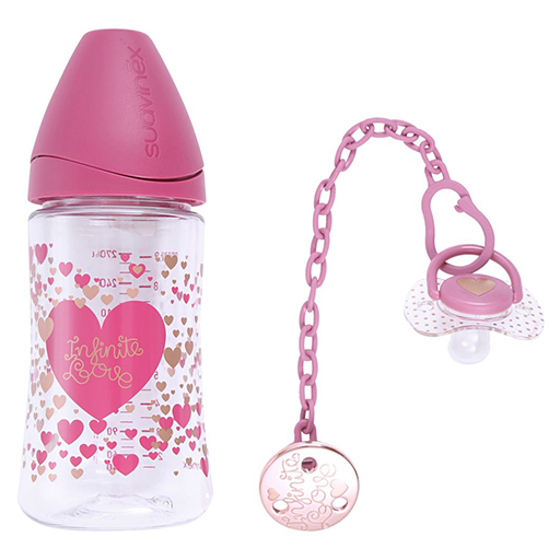 Suavinex Set Of Feeding Bottle With Soother And Chain Pink سيت رضاعة مع ملهية