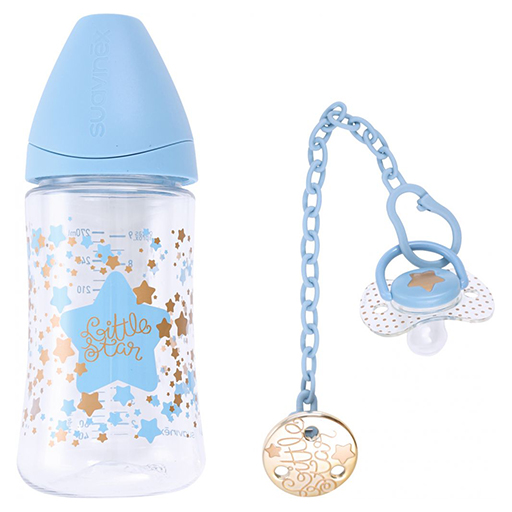 Suavinex Set Of Feeding Bottle With Soother And Chain Blue سيت رضاعة مع ملهية