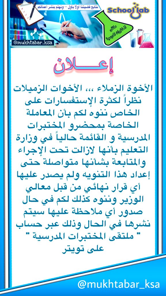 ملتقى المختبرات المدرسية Mukhtabar Ksa Twitter
