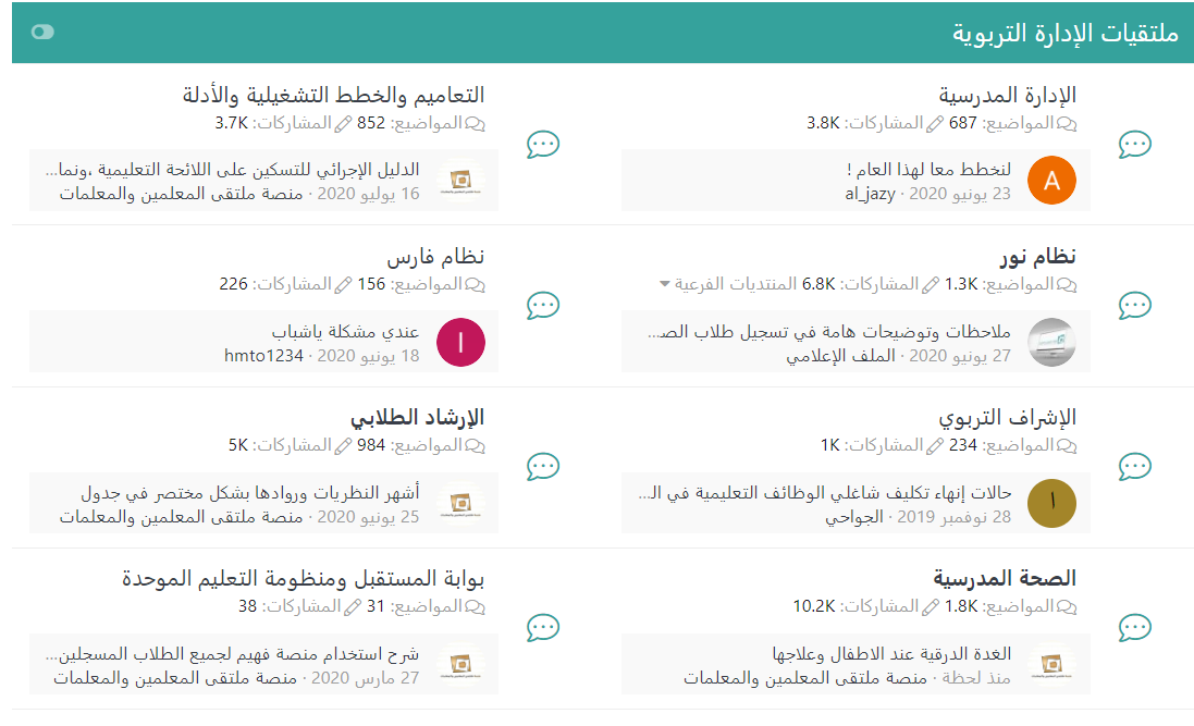 ملتقى المعلمين والمعلمات A Twitter أقسام منتديات شبكة ملتقى المعلمين والمعلمات التعليمية الإلكترونية 2 ملتقيات الإدارة التربوية 8 أقسام نور فارس الإرشاد الطلابي الإدارة المدرسية التعاميم