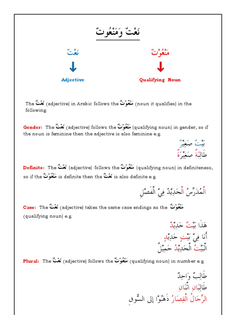 Arabic Grammar Adjectives In Arabic Softarabic Com