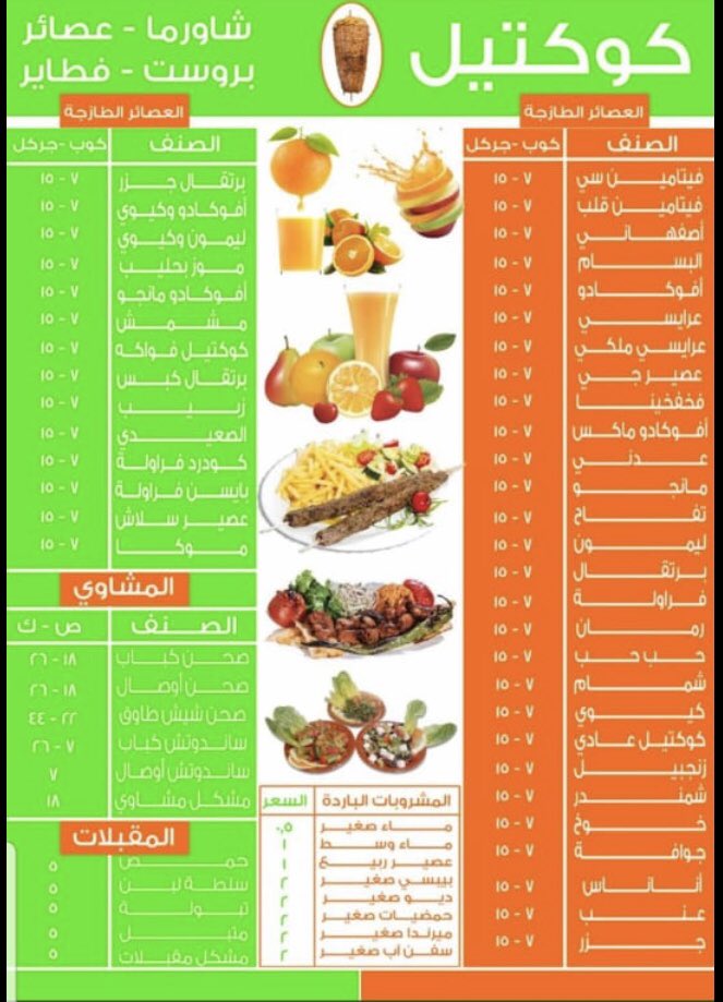 Aleppo Rose منيو محل سلطات الفواكه و العصائر Facebook