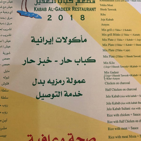مطعم كباب الغدير الكويت قائمة طعام كباب الغدير خدمة توصيل كباب الغدير طلبات