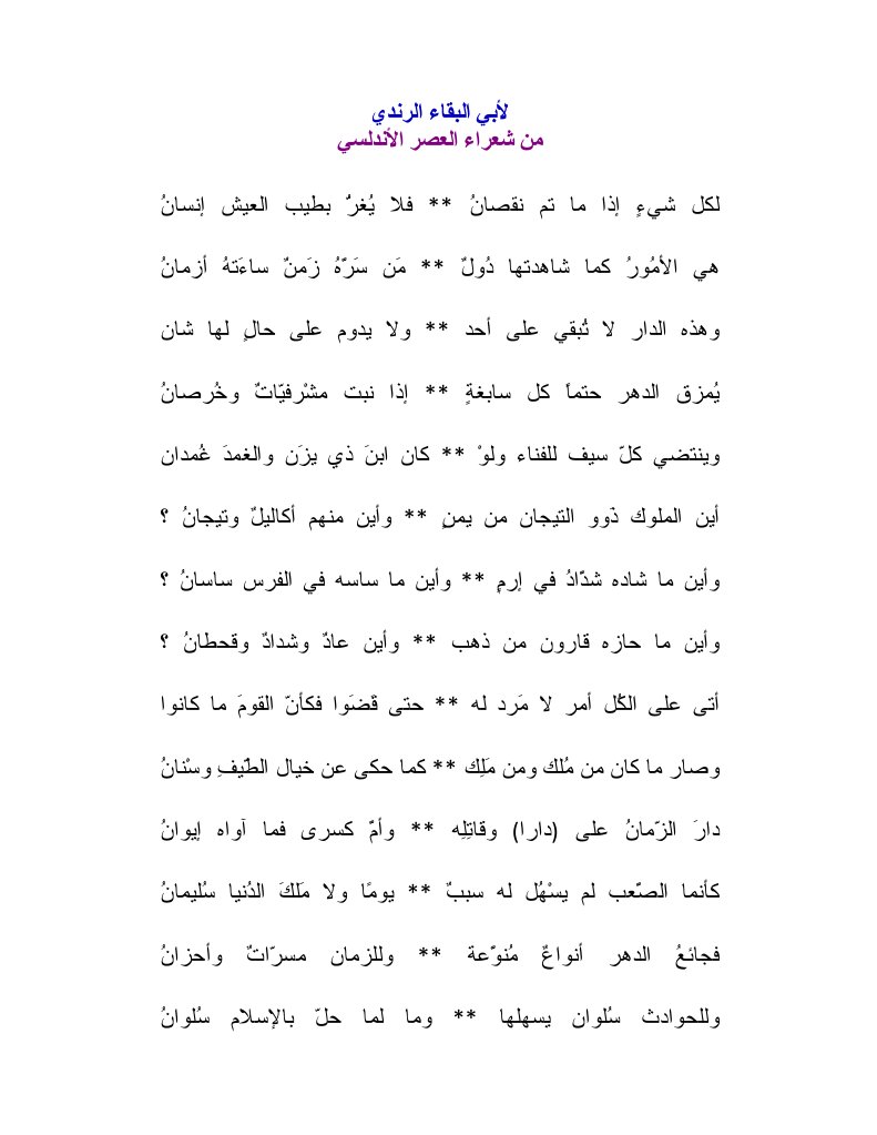 سفير الأندلس On Twitter هل تعلم أن القاضي أبو البقاء الرندي نظم مرثية الاندلس الشهيرة لكل شئ اذا ماتم نقصان قبل أكثرمن200سنة من سقوط الاندلس Http T Co Kukquqtbl4