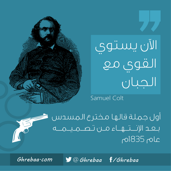 نجوى هاشم Twitterren الآن يتساوى القوي والجبان هذه أول جملة قالها صمويل كولت مخترع المسدس بعد الإنتهاء من تصميمه عام 1835م Https T Co Vaziyooelc