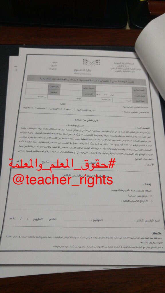 O Xrhsths حقوق المعلم والمعلمة وواجباتهما Sto Twitter مميز تعميم جديد للموافقة على الدراسة المسائية والانتساب يتطلب الموافقة من مديرك المباشر فقط وفق الإقرار المرفق Https T Co Yw27wp1ii3